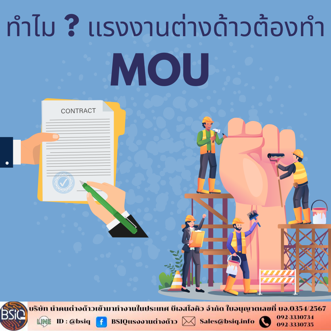 Memorandum Of Understanding ( MOU ) คือ เอกสารหรือหนังสือที่มีการเก็บบันทึกข้อตกลงที่มีความเข้าใจตรงกันทั้งสองฝ่าย โดยหน่วยงานของรัฐ บริษัทเอกชน หรือระหว่างรัฐต่อรัฐ เป็นบันทึกข้อตกลงที่มีความเข้าใจตรงกันเป็นรูปเเบบหนังสือหรือสัญญา ซึ่งมีข้อความที่ระบุเป็นหลักเกณฑ์หรือวิธีการให้บุคคลที่เกี่ยวข้องต้องปฏิบัติหรือดำเนินการในเรื่องใดเรื่องหนึ่งเป็นข้อกติกา ข้อที่นัดหมายกันไว้ หรือเงื่อนไขที่กำหนดไว้ โดยที่สัญญาหรือหนังสือนี้ ไม่ถือว่าเป็นสัญญาผูกมัด เเต่เเสดงความต้องการอันเเน่วเเน่ของผู้ลงนามว่าจะปฏิบัติตามที่ได้ระบุไว้เป็น MOU เข้ามา โดยรัฐของประเทศต้นทางได้ทำความเข้าใจที่ตรงกันระหว่างเเต่ละประเทศ โดยตัวเเทนของทุกฝ่าย จะลงนามในบันทึกข้อตกลงสัญญาหรือหนังสือ เพื่อให้มีผลบังคับใช้