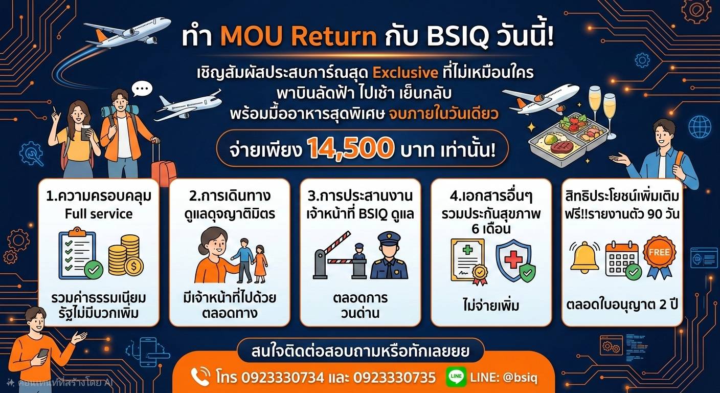 - นำเข้าแรงงานระบบ MOU: จัดหาและนำเข้าแรงงานใหม่ตามบันทึกข้อตกลงระหว่างประเทศ