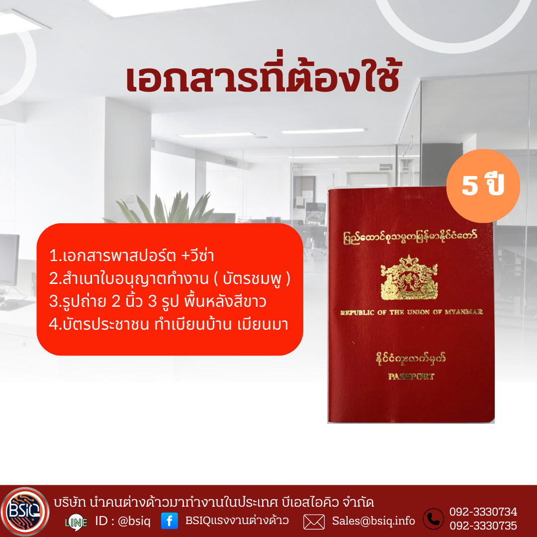 บริการทำหนังสือเดินทางเมียนมาเล่มใหม่ เล่มสากลสีเเดงอายุ 5 ปี ( PJ )