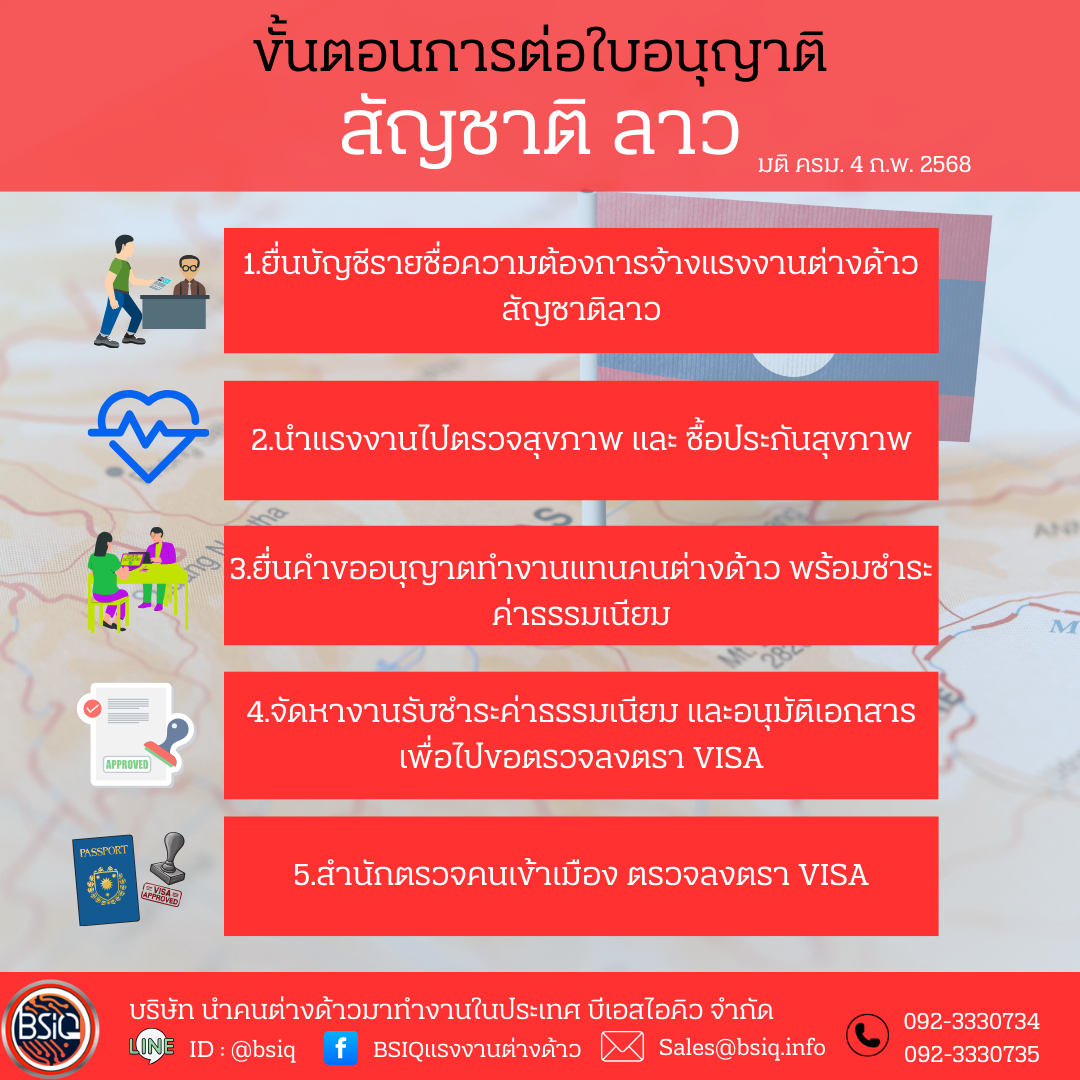 บริการต่อใบอนุญาตทำงาน วีซ่า ที่หมดอายุ 13 ก.พ. 2568 มติ ครม. 4 ก.พ. 2568 สัญชาติลาว
