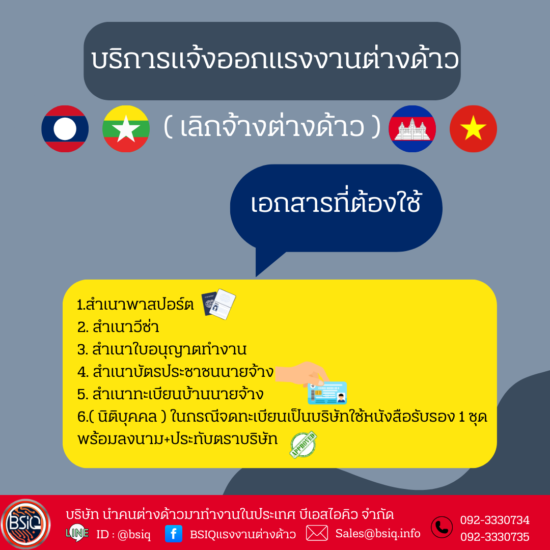 บริการเเจ้งออกเเรงงานต่างด้าว ( เลิกจ้างต่างด้าว )